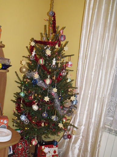Choinka jednak jest, koty na nią nie włażą. Kiedy byliśmy na Wigilii nic nie zbroiły. W nocy za to ściągnęła łańcuch i stłukły nowy świecznik z talerzykiem. Za talerzyk to jestem zła, bo bardzo go lubiłam.
