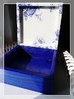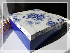 Oczywiście nie jest to, żaden cud, ani wielkie dzieło sztuki. Ogólnie oceniam efekt końcowy na zadawalający. Najbardziej mnie cieszy wykończenie górnego wieczka w środku. Kosztowało mnie to trochę trudu i mnóstwo cierpliwości, żeby dosztukować elementy niebieskich kwiatów tak, aby przechodziły płynnie z wierzchu wieczka na jego spód. |