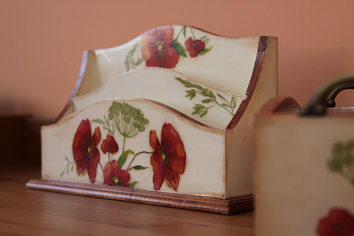 W końcu udało mi się wykończyć coś nowego, chociaż pora letnia nie sprzyja u mnie decu. Ogród stanowi silną konkurencję, czasami jacyś wakacyjni goście ..... No właśnie, długo wyczekiwani goście zmusili mnie do pracy - przyjechali po swoje zamówienia i musiałam skończyć (a ogród zarastał chwastami).