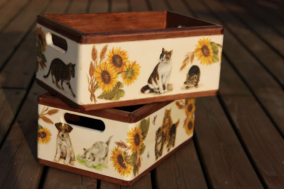 Są fantastyczne !!!! Właśnie wczoraj kupiłam sobie taka skrzynkę i od rana kombinuję co by z nią zrobić. Mam też serwetki z kotkami i pieskami i nie wiedziałam do czego je wykorzystać.